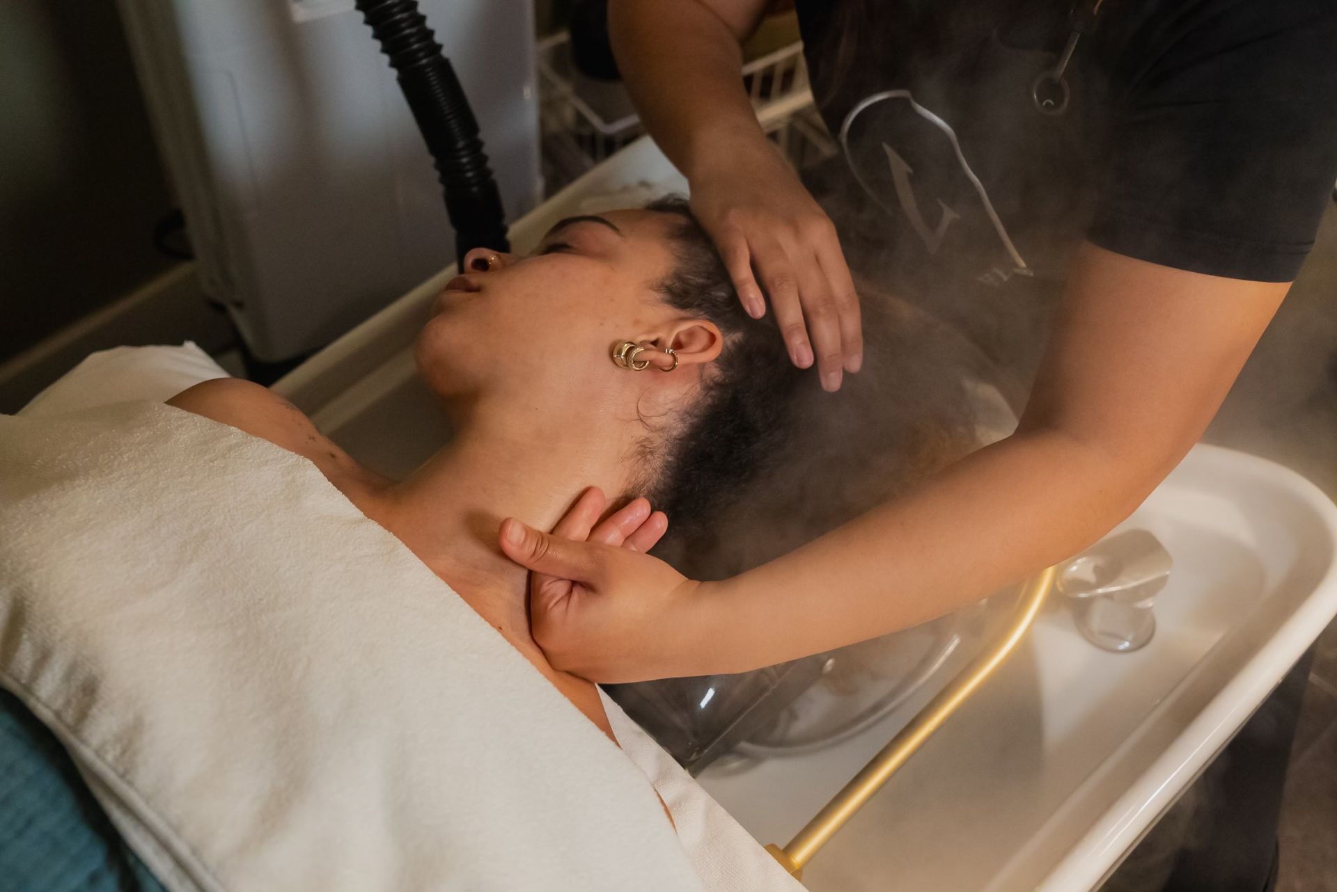 The heart of this service is the signature massage; a blend of techniques that increase blood flow, stimulate hair follicles for healthy growth, and relax you into a state of bliss.